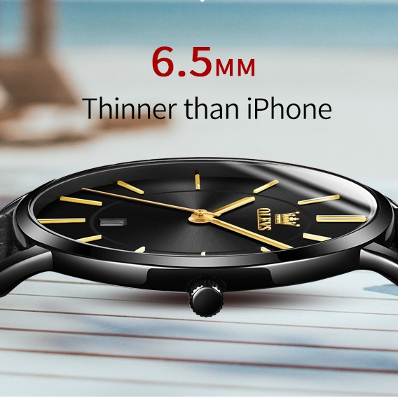 OLEVS Jam Tangan Pria Tipis Anti Air Original 100 PERSEN Asli Kulit Mewah Arloji Pria Tahan Waterproof Ultra-thin Dial Analog