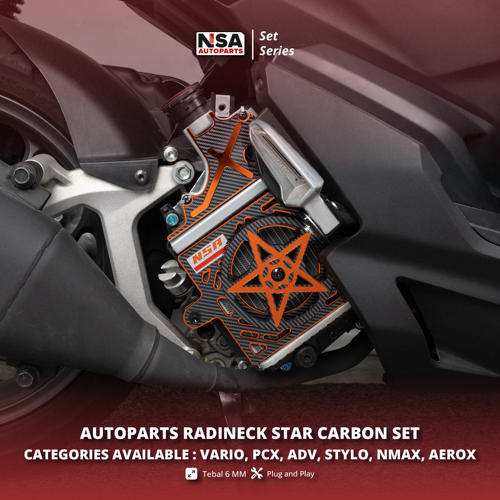 PAKETAN AUTOPARTS COVER RADIATOR SPINER BINTANG TIPE CARBON NMAX AEROX VARIO STYLO 160 TUTUP RADIATOR SPINER BINTANG PAKETAN YAMAHA AKSESORIS MOTOR