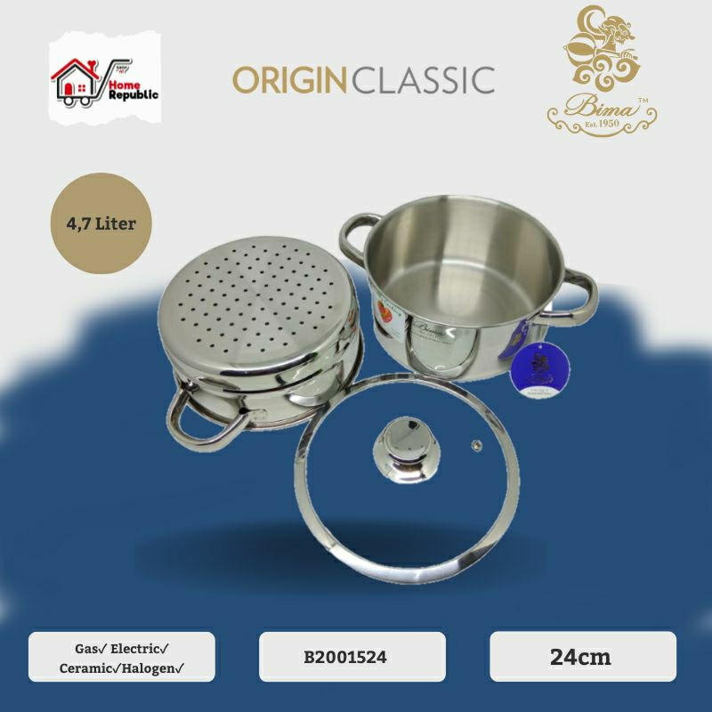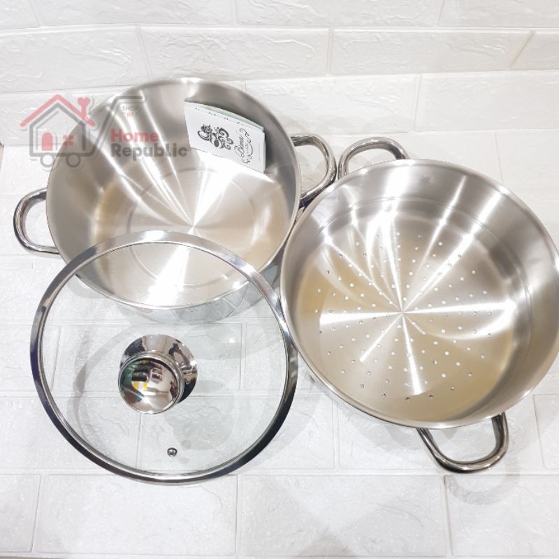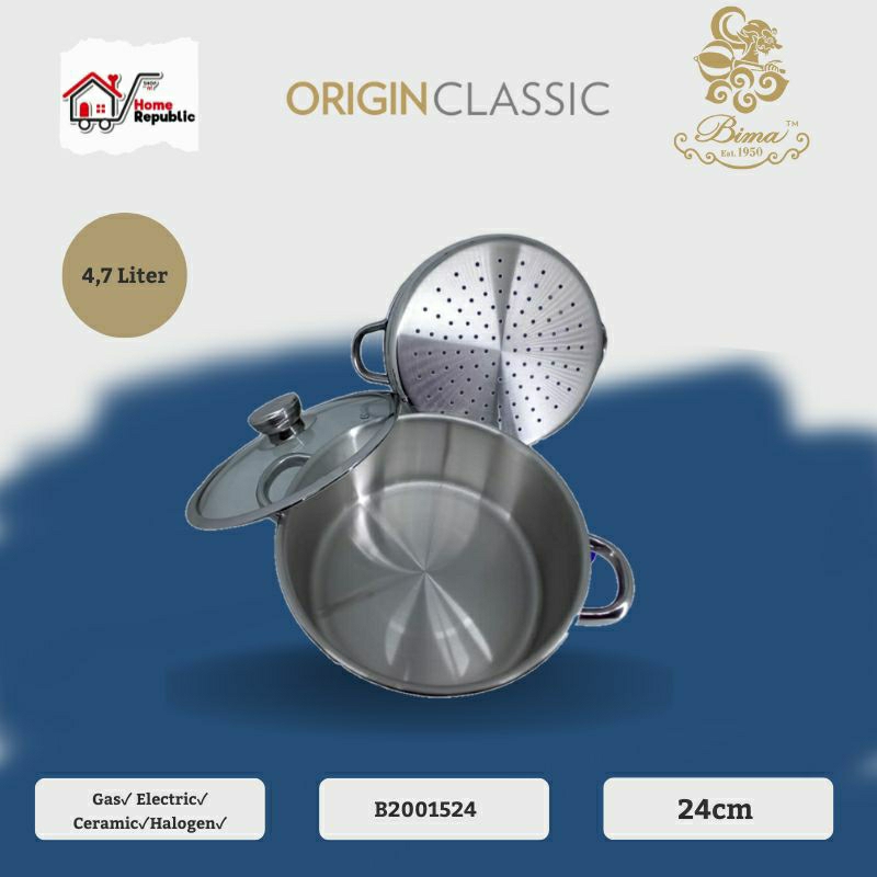 BIMA PANCI STEAMER SET 24CM ORIGIN CLASSIC TEMPERED GLASS LID B2001524 KUKUSAN STAINLESS