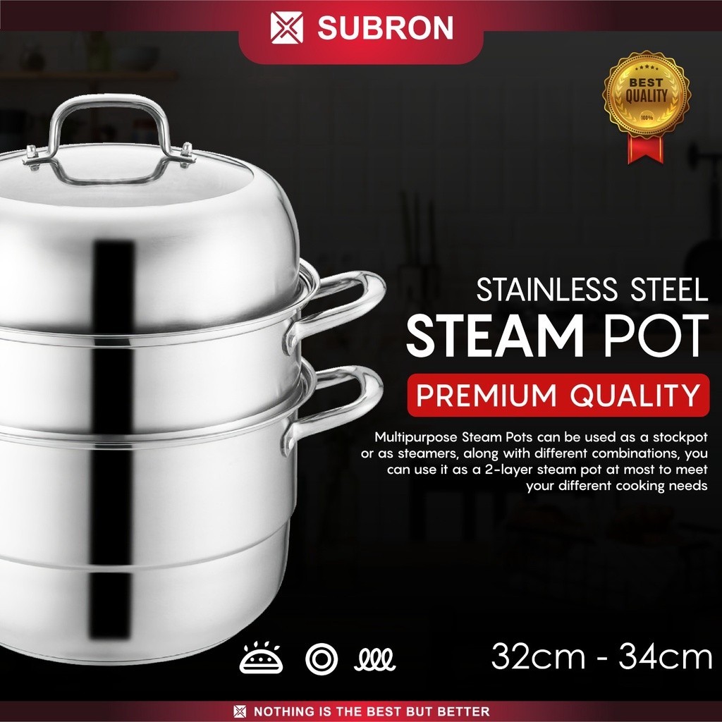 Panci Kukus 3 Susun 32 & 34cm Steam Pot Steamer Siomay Dimsum Bapau Multifungsi Stainless Tebal