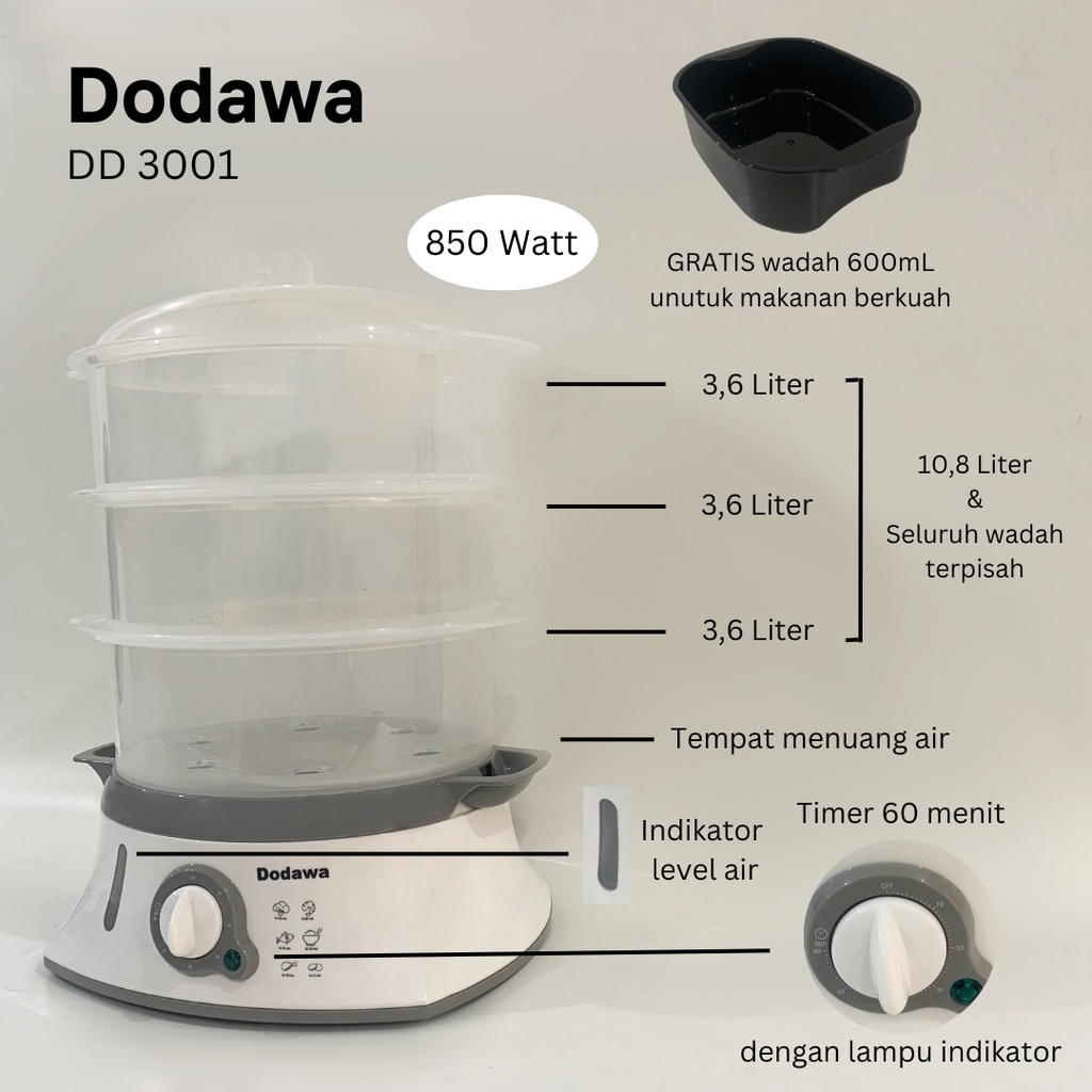 Steamer elektrik 3 level Stainless / Alat kukus dimsum 3 tingkat / mesin kukusan stainless/ panci kukus / steamer elctri