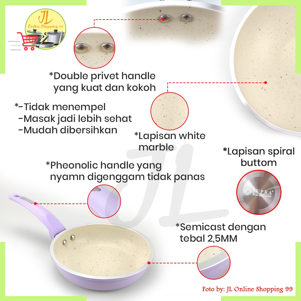 SUPRA Panci set 6pcs white marble Lavender + steamer / cookware set anti lengket pastel series / panci kukus set