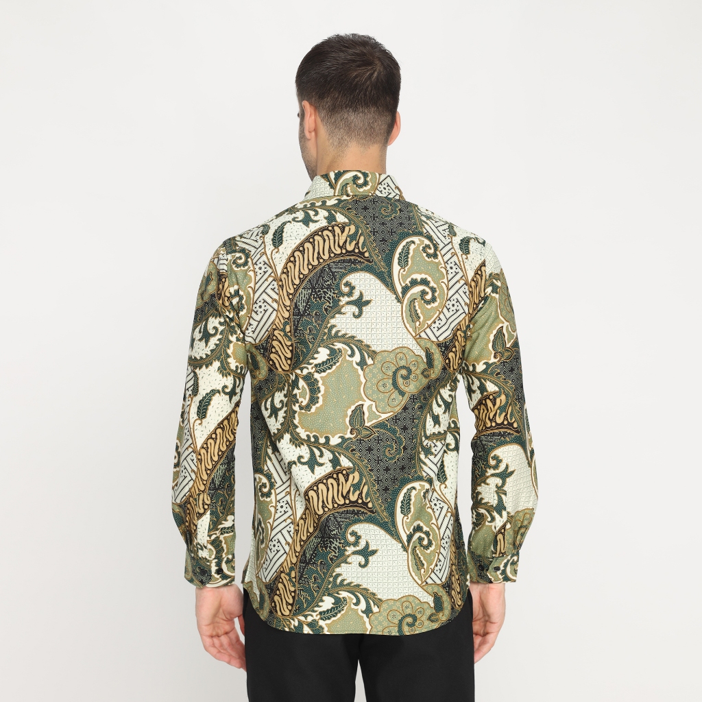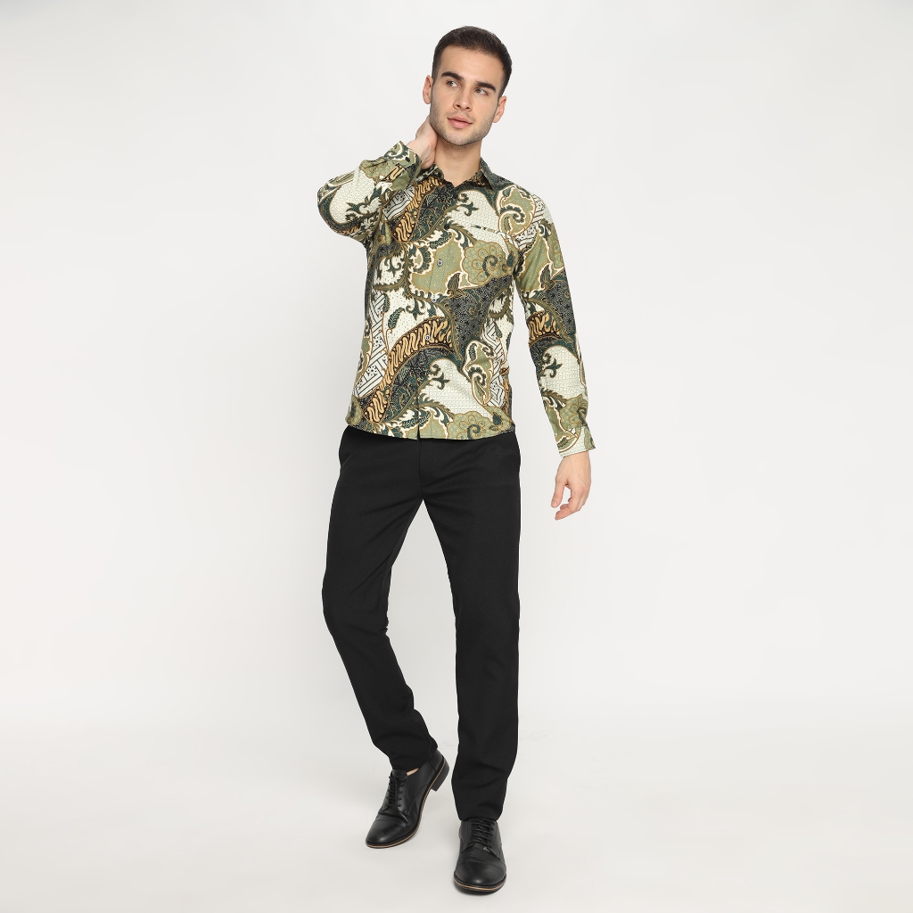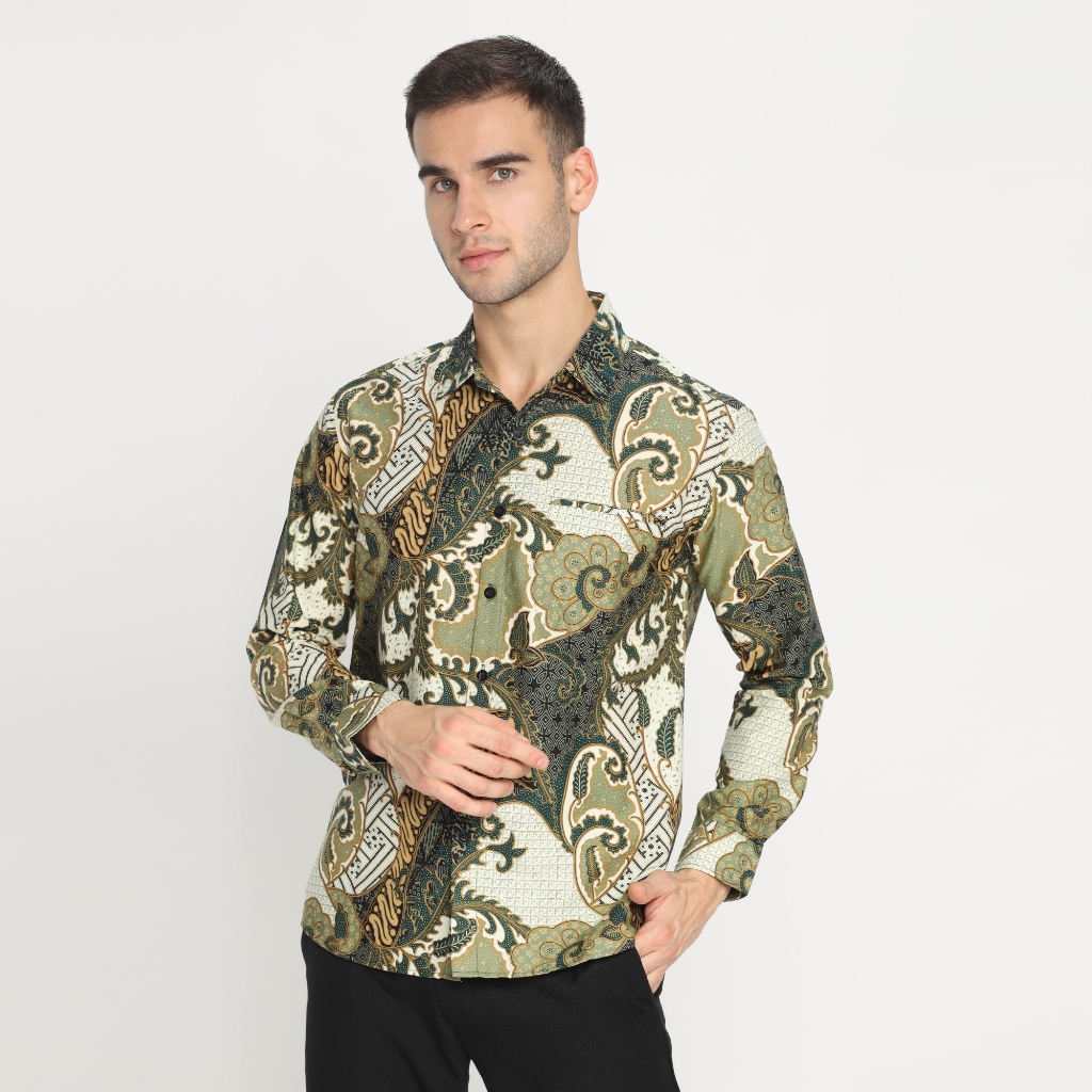 Kemeja Batik Pria Atasan Batik Modern Lengan Panjang Motif Hijau Sage OLR229