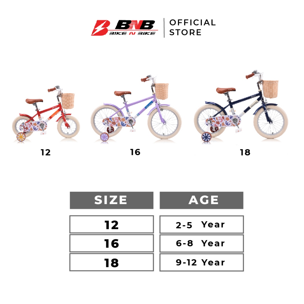 BIKENBIKE - SEPEDA ANAK PEREMPUAN USIA 3 - 9 TAHUN CTB RETRO - LILY UKURAN 12 16 18 INCH BAN 2.125