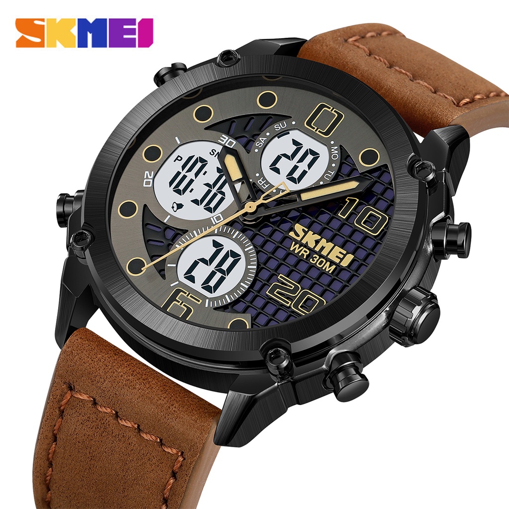 SKMEI 1975 Jam Tangan Pria Digital Analog Tali Kulit PU MGOS