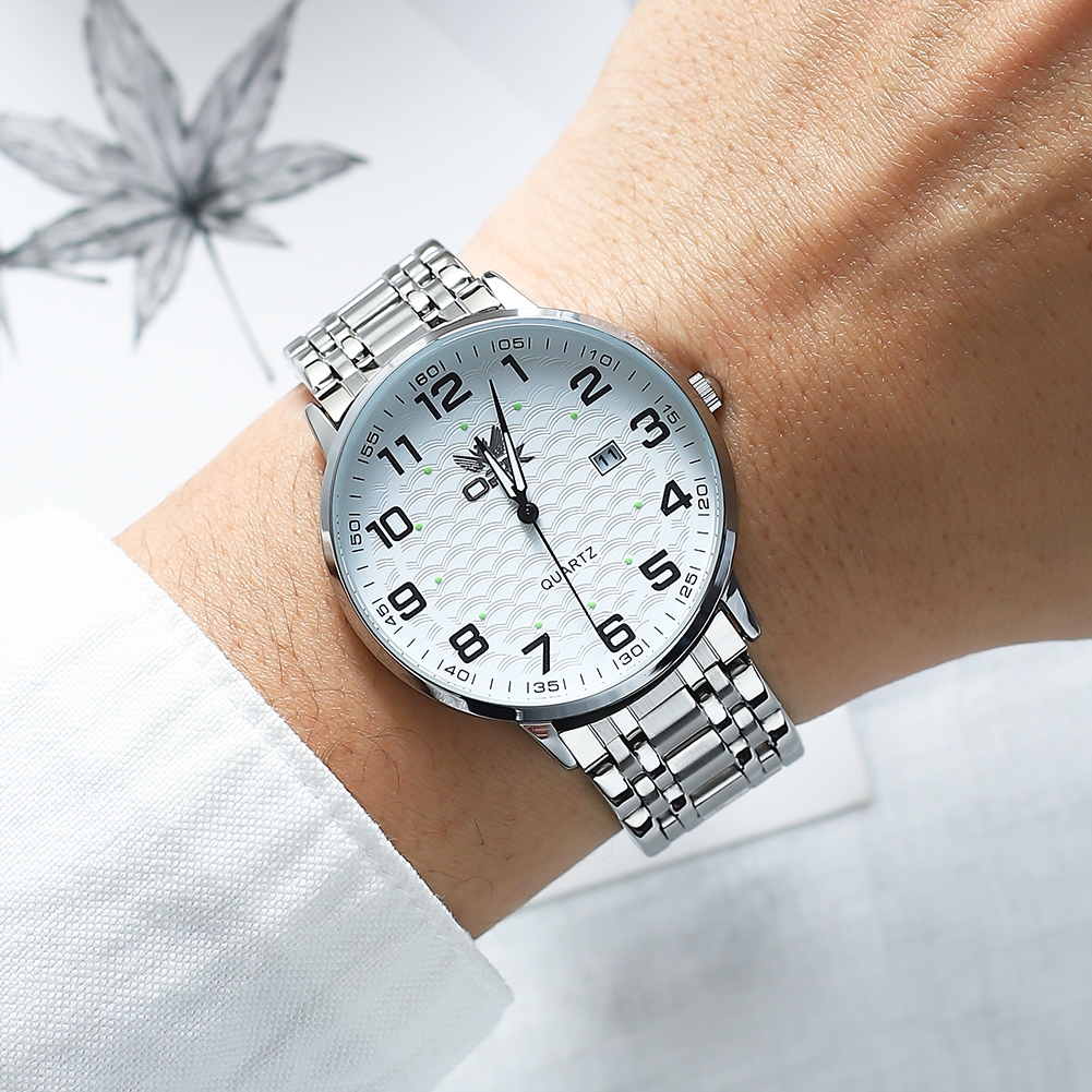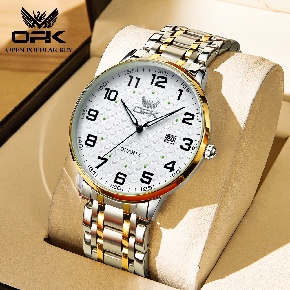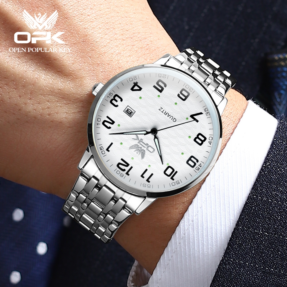 OPK Jam Tangan Pria Anti Air Original Cowok Luminous Kalender Tali Stainless Steel Bisnis Fashion Men Watch Model 6006