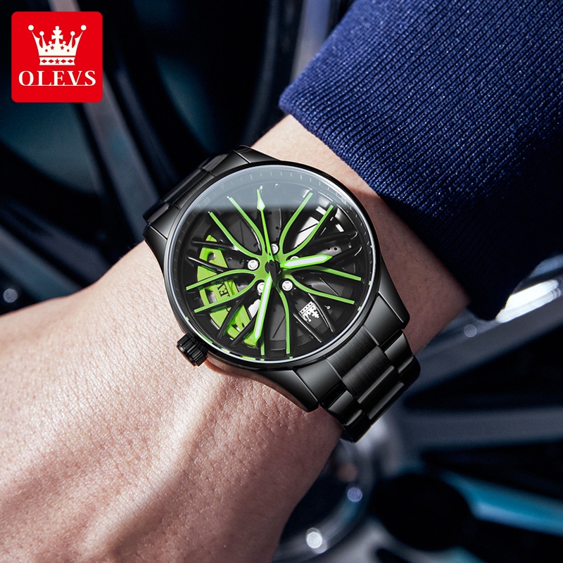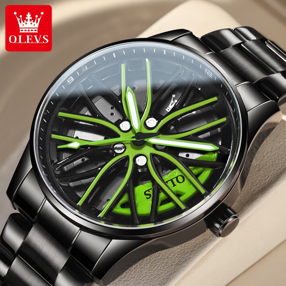 OLEVS Jam Tangan Pria Anti Air Original 2025 Terbaru Luminous Rotating Fashion Unik Multifungsi Kuning Hijau Man Watch M