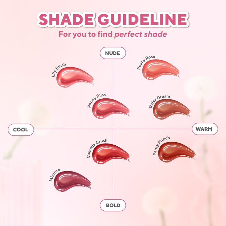 Peacy Rose, Daisy Dream, Lily Blush, Peony Bliss, Pansy Punch, Camelia Crush, Mimosa