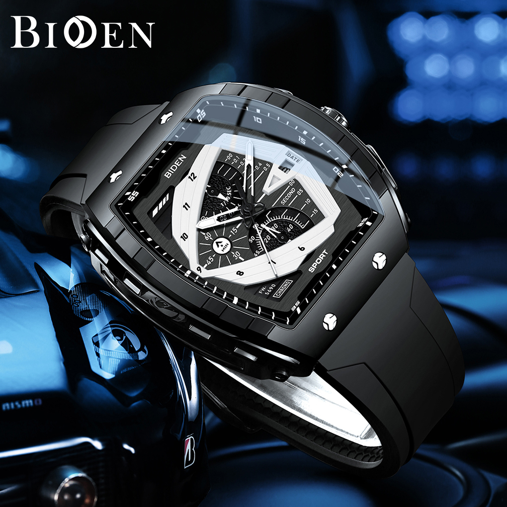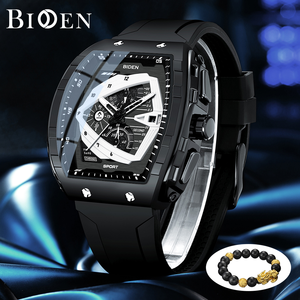 BIDEN Jam Tangan Pria Anti Air Original Olahraga Pria Kalendar Bercahaya Tali Silikon Jam Tangan Cowok
