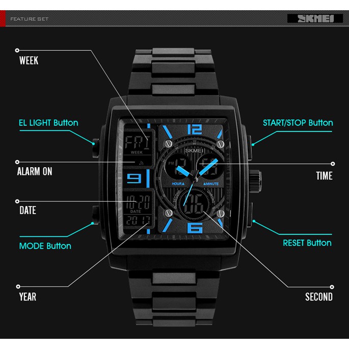 Jam Tangan Pria Digital Analog Skmei 1274 Red Water Resistant 50m