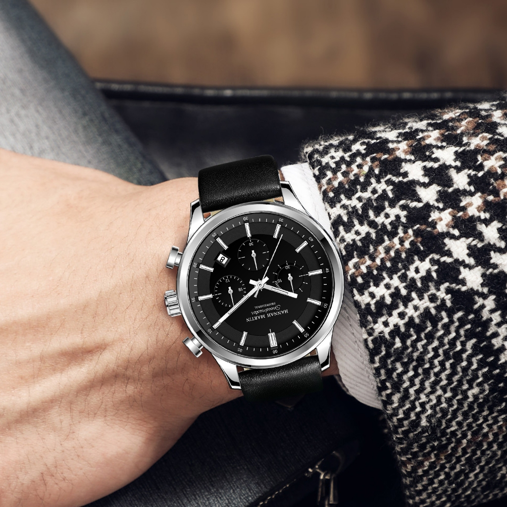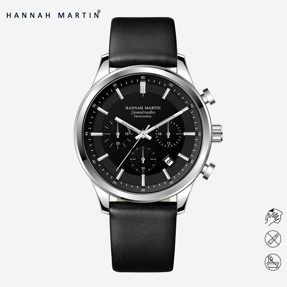 HANNAH MARTIN Jam Tangan Pria 100 PERSEN Original Kronograf Premium Kulit Tahan air Quartz Tanggal Analog Laki Arloji 1431
