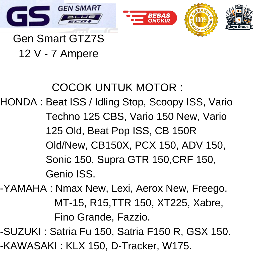 Aki Kering 7 ampere Motor Honda Vario 160, Vario 125, Vario 150, Beat ESP ISS Gen Smart GTZ7S