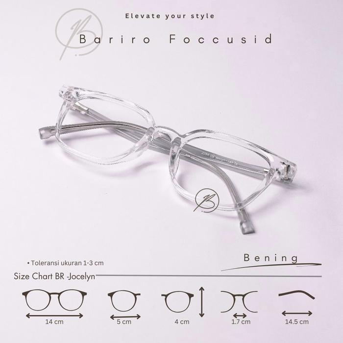 [Paket Box Lap & Cairan pembersih] Frame Kacamata Kotak Jocelyn Fashion Pria Dan Wanita - Bening Frame Saja