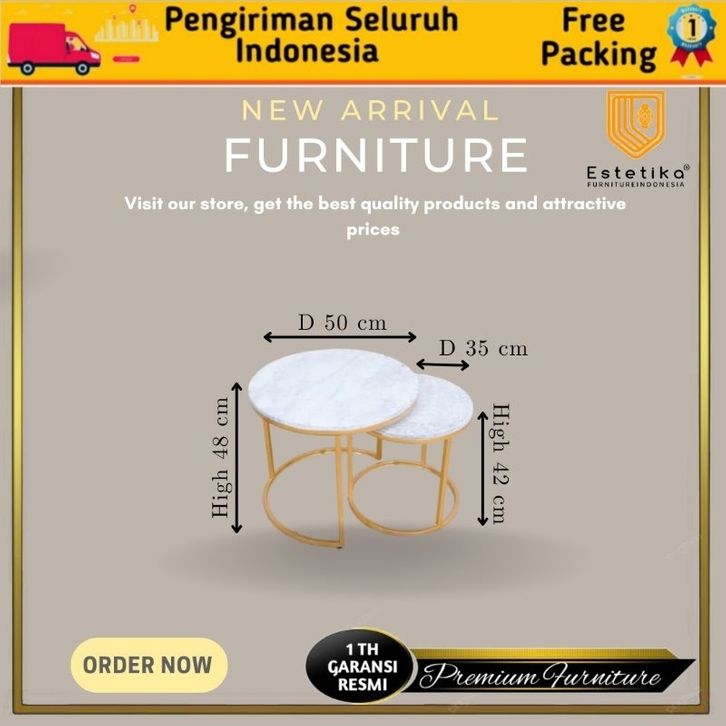ESTETIKA FURNITURE INDONESIA Meja Tamu Minimalis Marmer (Coffee Table) Nesting D 50 cm Bulat Susun Mewah