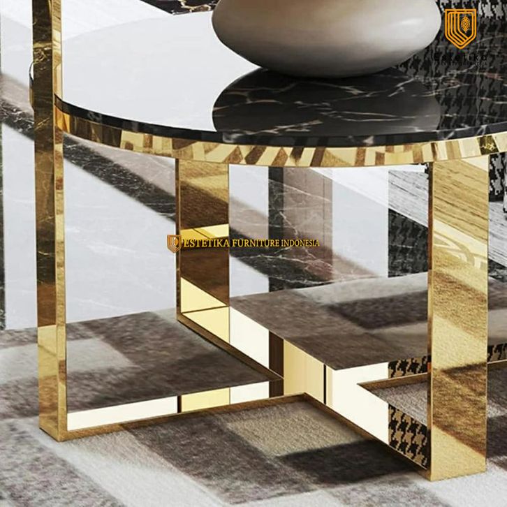ESTETIKA FURNITURE INDONESIA Meja Sudut Marmer Navaro Stainless Steel Dengan Finishing g0lds Luxury