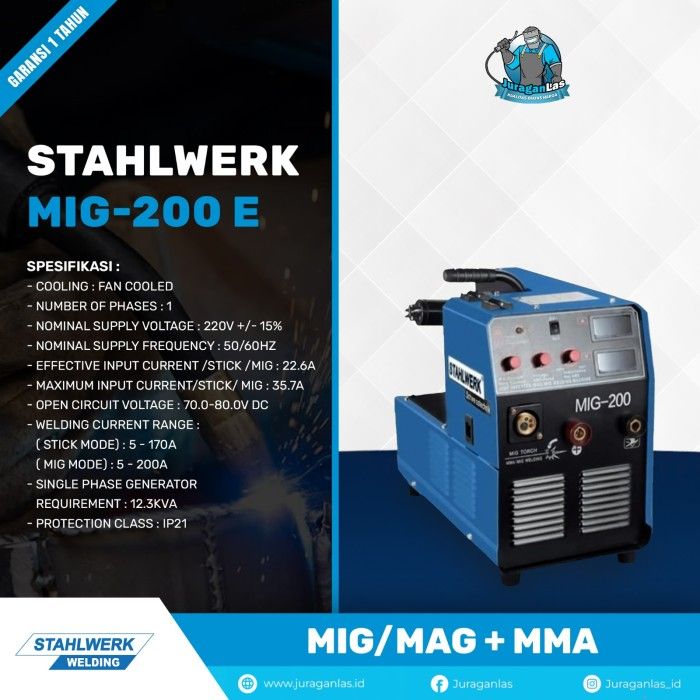 Mesin Las MIG/MAG + MMA 200A merk Stahlwerk tipe MIG-200E