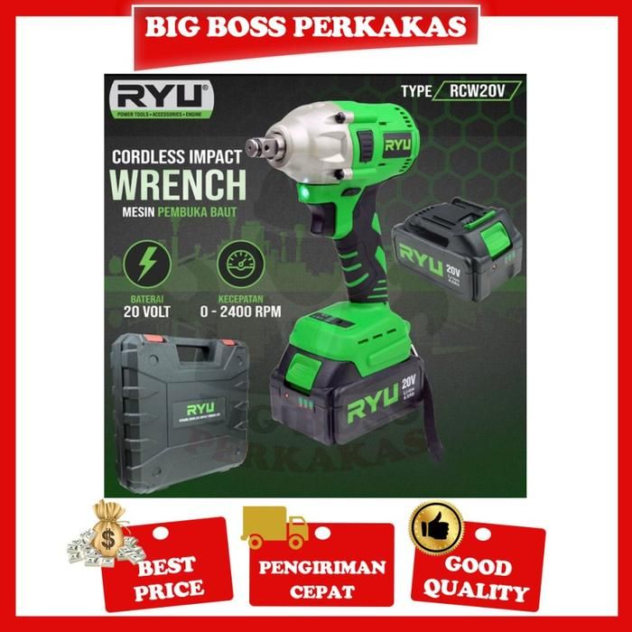 RYU RCW20V ALAT BUKA BAUT MOBIL BATERAI 20V CORDLESS IMPACT WRENCH