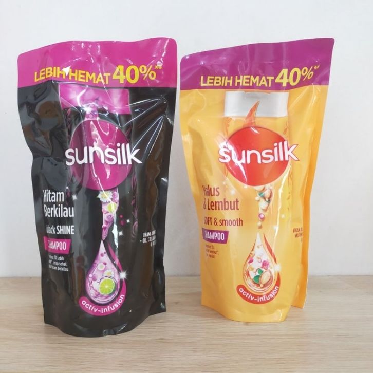 SUNSILK SHAMPOO REFILL SOFT AND SMOOTH, BLACK SHINE POUCH ISI ULANG 900 mili