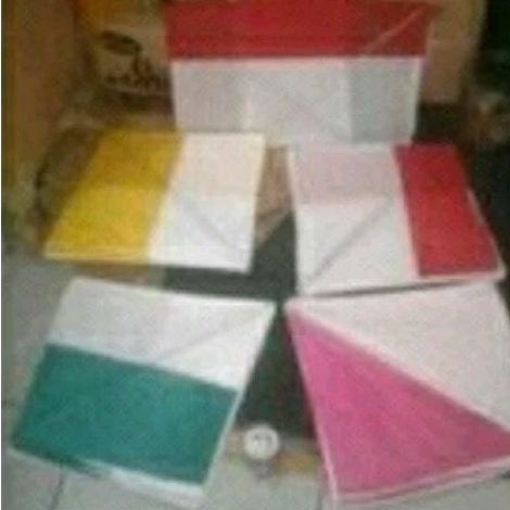 Layangan Merah Putih , Hijau Putih , Kuning Putih , Oren Putih , UK 65/55 cm isi 50 Pcs kualitas Super
