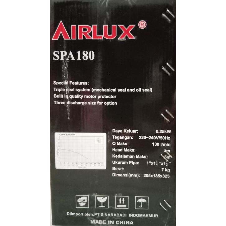 Pompa Air Jet pompa celup air keruh merek Airlux type spa180