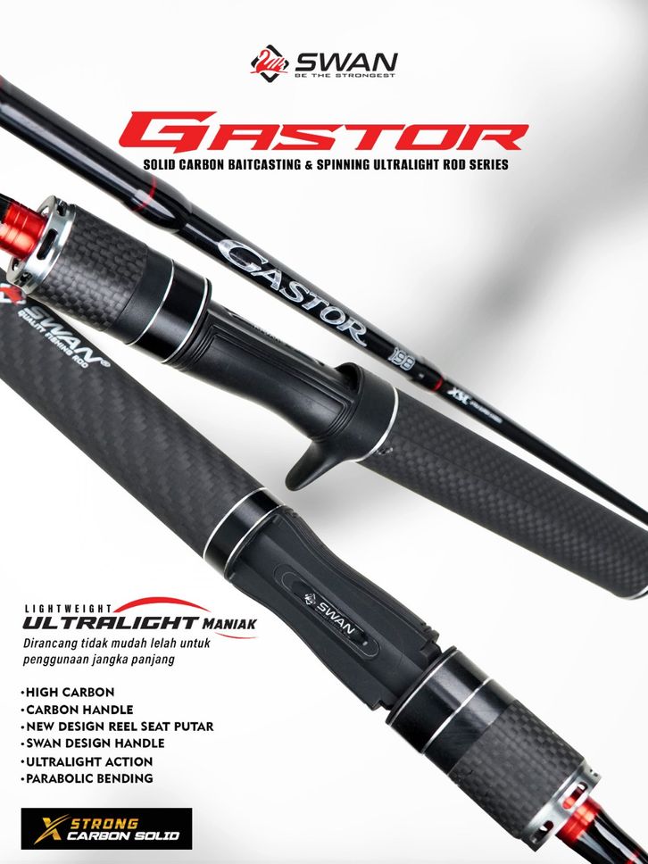 Joran Pancingan Joran Pancing Swan UL GASTOR, Solid Carbon Spinning dan Bait Casting, 150 - 210cm, BONUS PAPER CORE