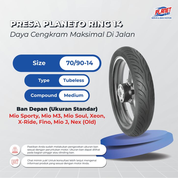 [Star] Ban Motor Ring 14 Presa Planeto Tubeless (Ban Motor Mio Sporty, Mio M3, Mio Soul, Xeon, X-Ride, Fino, Mio J)