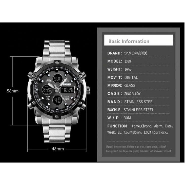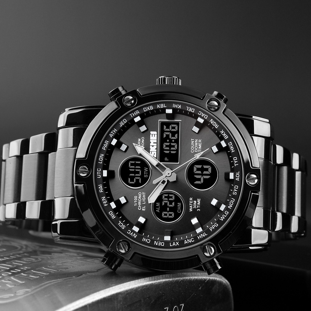 Jam Tangan Pria Digital Analog SKMEI 1389 Black Water Resistant 50M