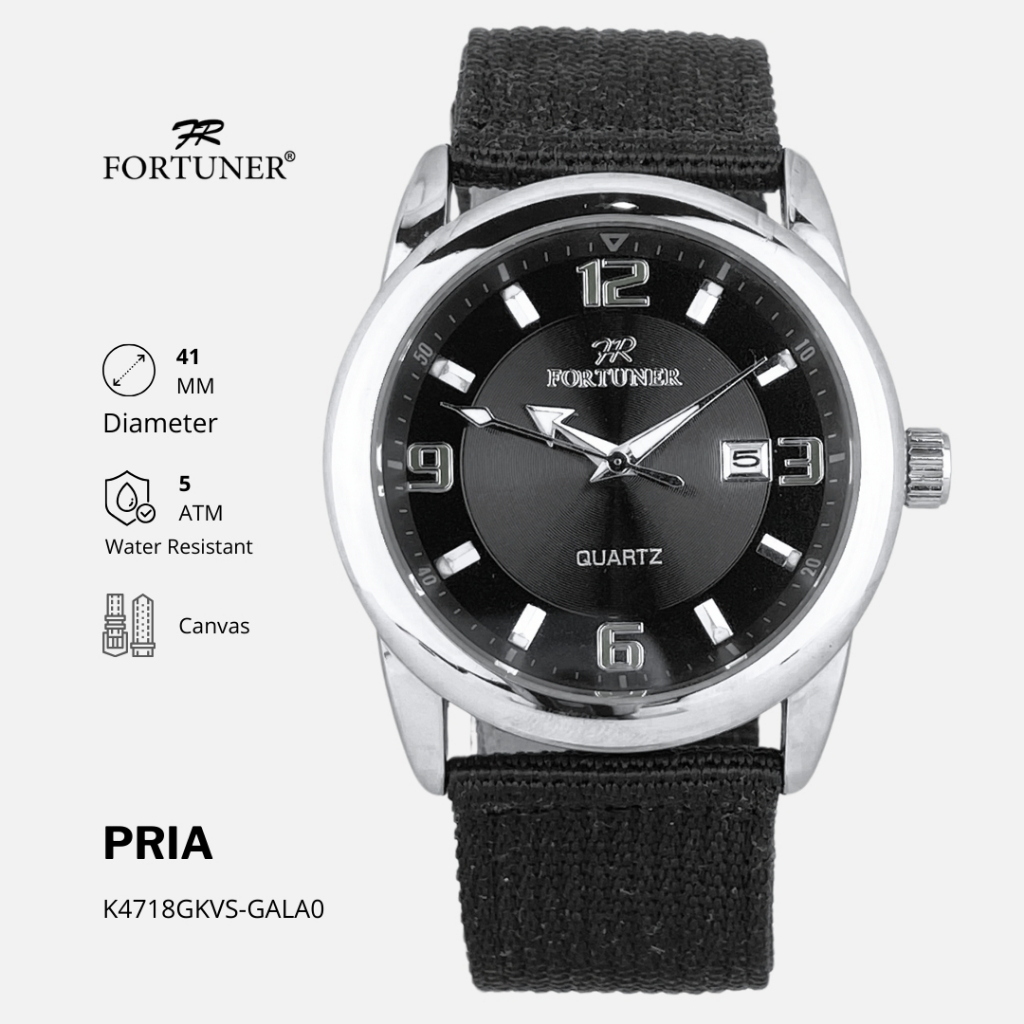 Fortuner Jam Tangan Pria Kasual Analog Quartz Tahan Air Kanvas Asen