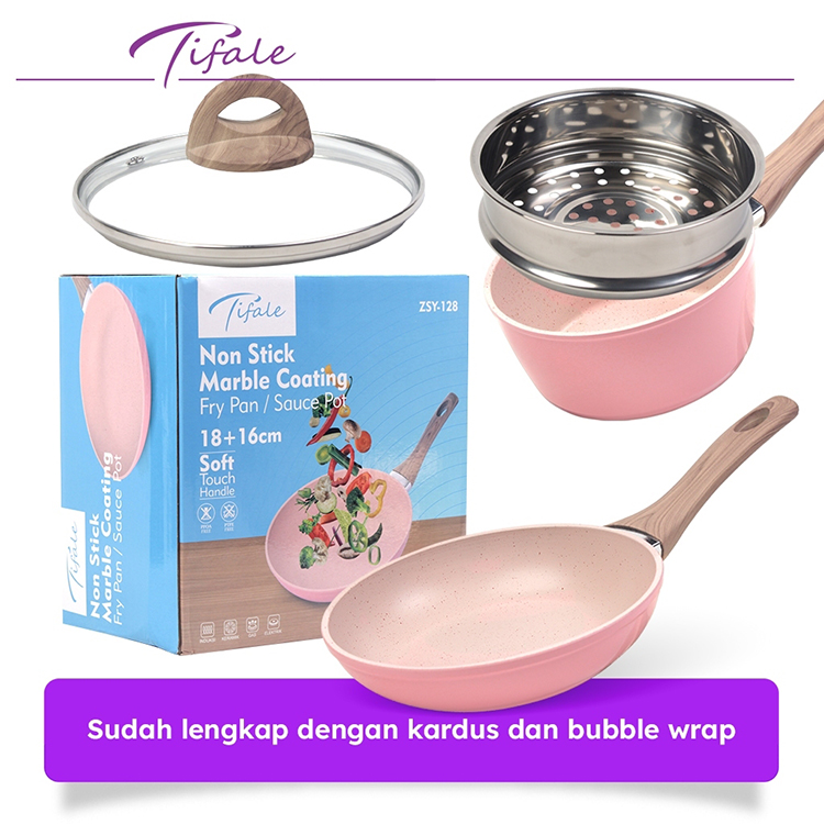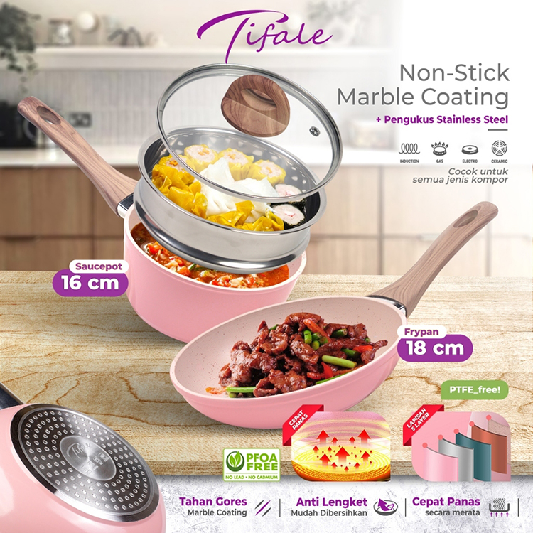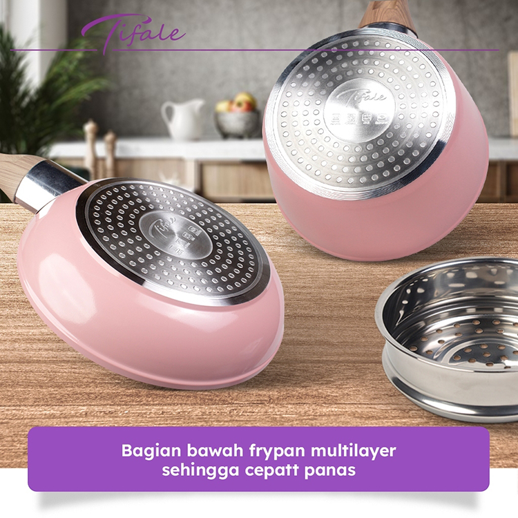 Tifale by ABS Panci Set 3 IN 1 Kukus Mpasi Peralatan Bayi Fry Pan Cookware Baby Wajan Granit Anti Lengket