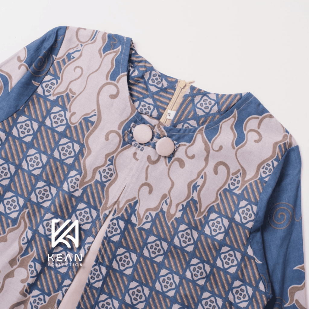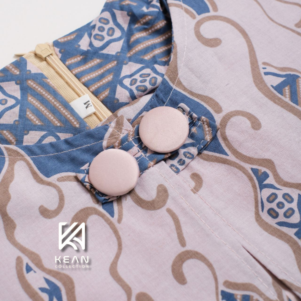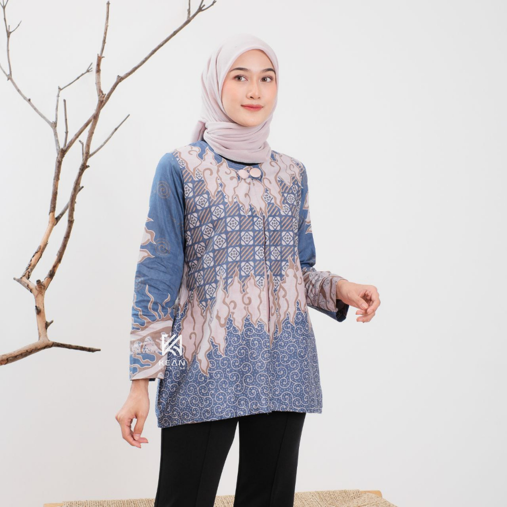 KEAN Batik Wanita Modern Lengan Panjang Motif Saroja Series Jumputan Solo Atasan Tradisional Kemeja Kerja Kantor Seragam