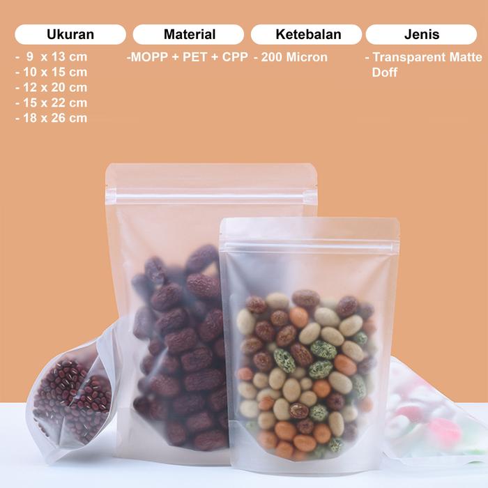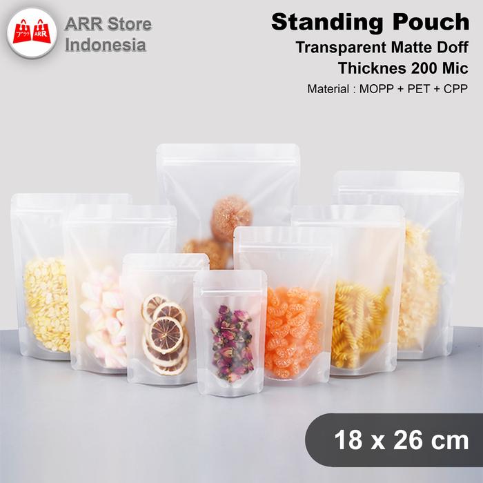 FLASH SALE STANDING POUCH TRANSPARAN MATTE DOFF KAN KLIP 18 X 26 CM UK 18 X 26