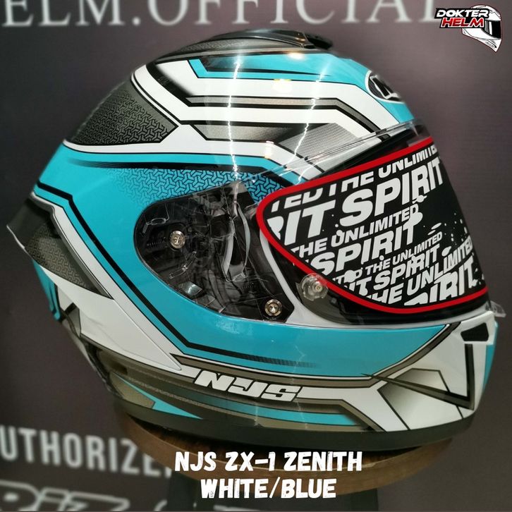 HELM NJS ZX-1 ZX1 ZX 1 ZX ONE MOTIF ZENITH WHITE BLUE GLOSSY ORIGINAL SNI DOT HELM NJS ZX-1 FULL FACE 2 KACA 2 VISOR