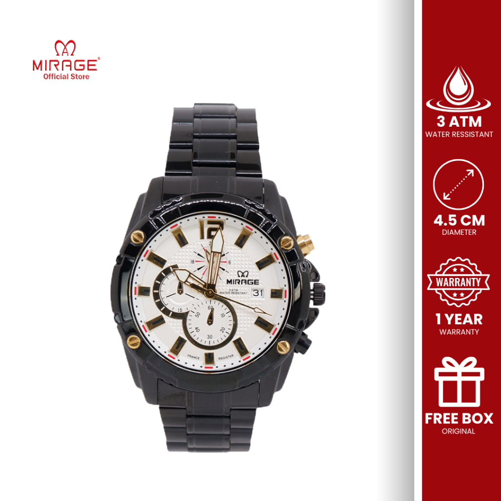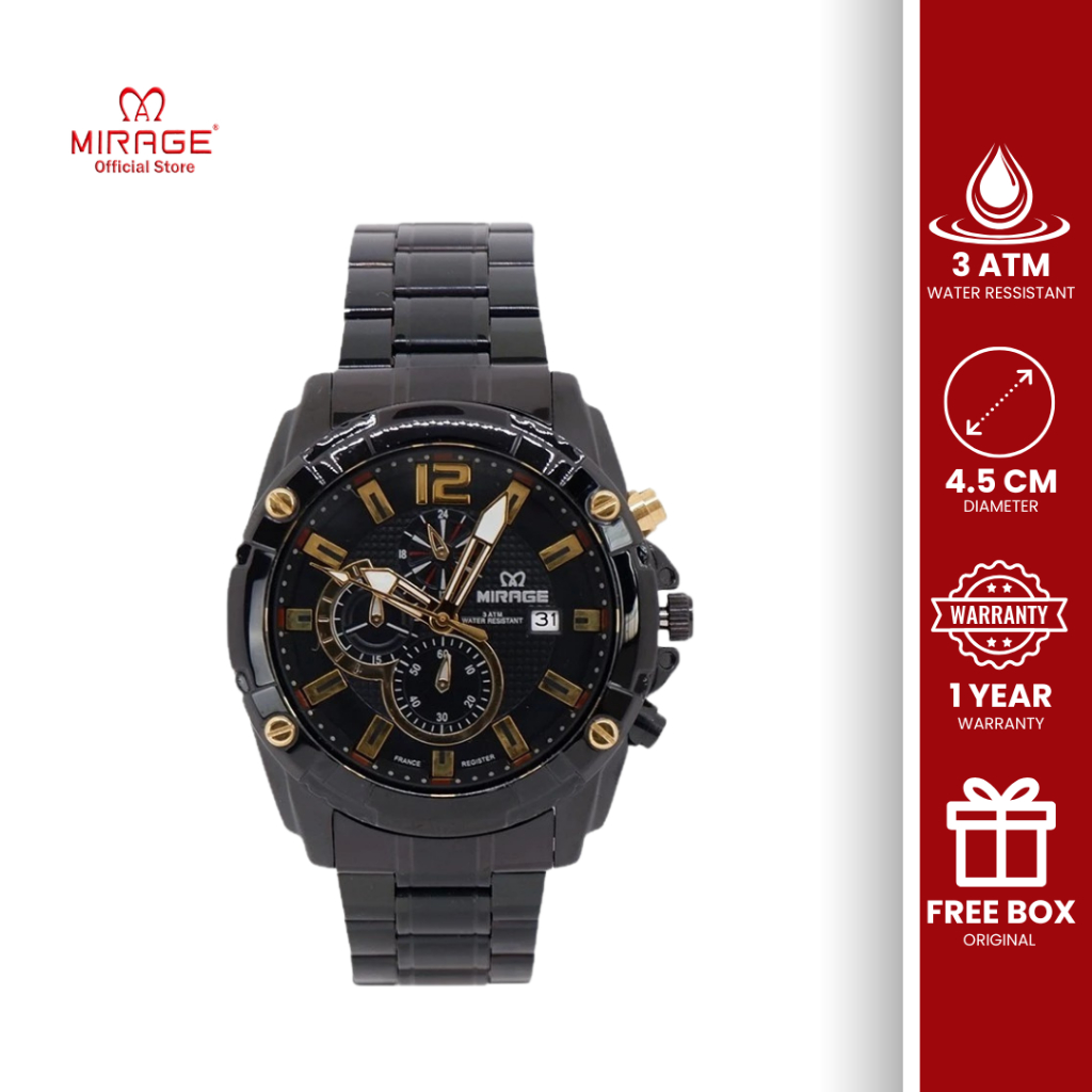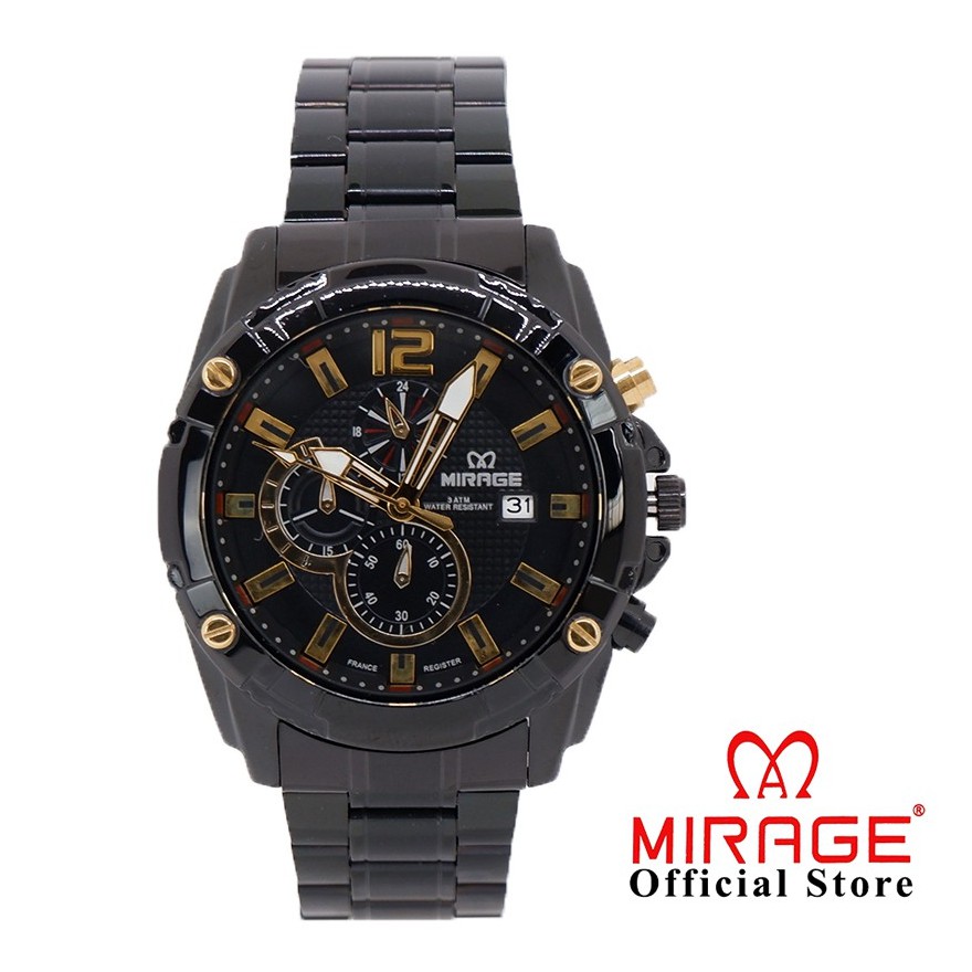 Mirage Jam Tangan Chrono Pria Hitam Sporty Formal 8714 M AnalogTahan Air 3 ATM Original Anti Karat