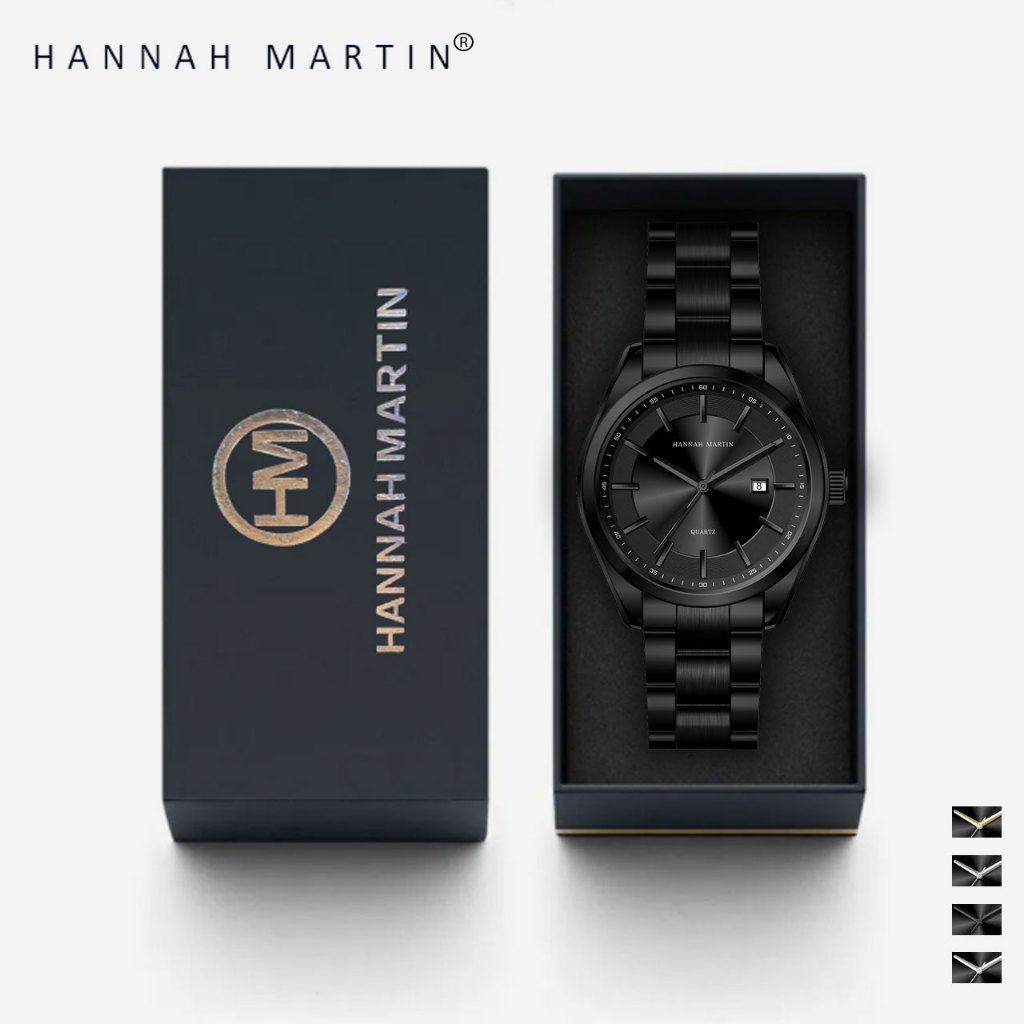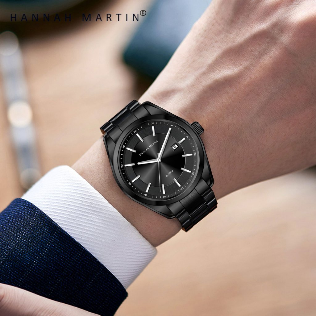 HANNAH MARTIN Jam Tangan Pria 100 PERSEN Original Business Kekinian Model Terbaru Keren Tanggal Analog Stainless Steel Tahan A