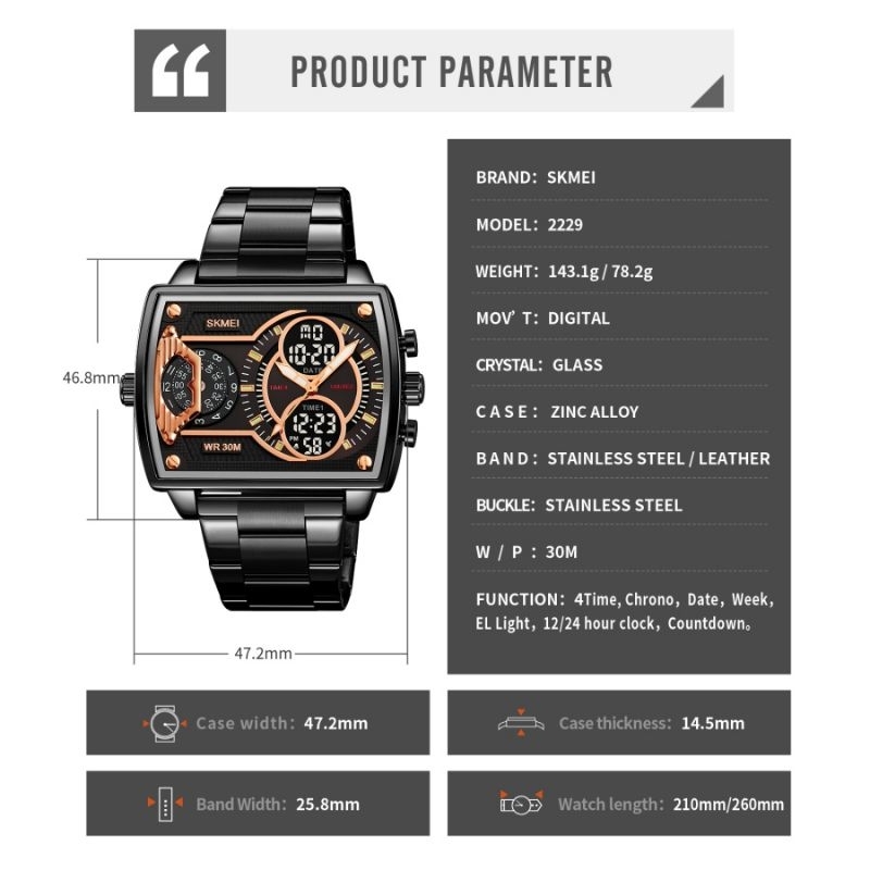 Jam pria Skmei 2229 four time free gift box