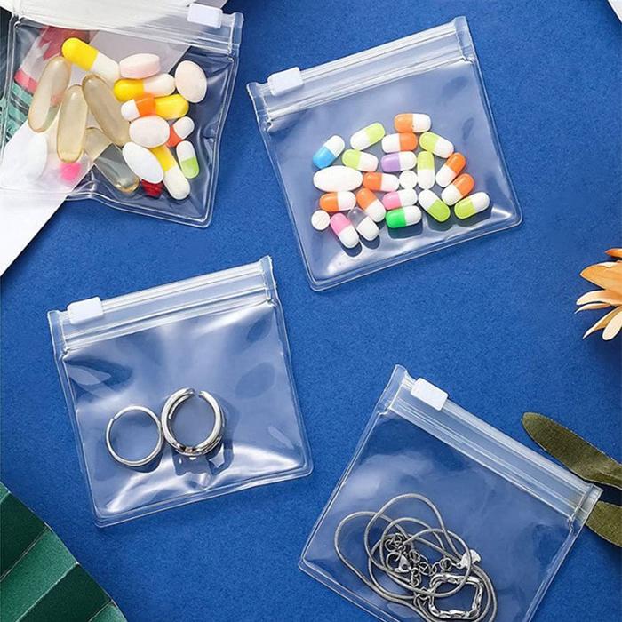 TERLARIS 5PCS RITSLETING TAS POUCH OBAT TAS PENYIMPANAN PERHIASAN SERBAGUNA TEMPAT OBAT MINI TRANSPARANT PILL BOX SMALL ZIPPER TAS
