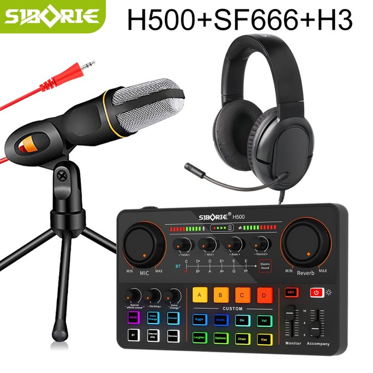 SIBORIE SOUNDCARD H500+SF666 MIC+H3 HEADPHONE LIVE STREAMING OF ALL KIT EQUIPMENT SOUND CARD MICROPHONE