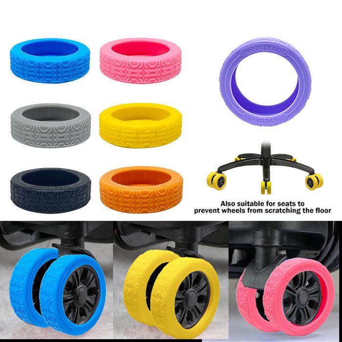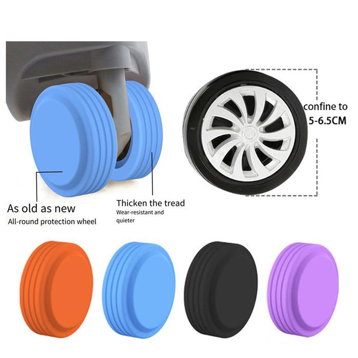 TERLARIS 8PCS KARET PELINDUNG RODA KOPER SILIKON LUGGAGE WHEEL COVER PROTECTOR 4PCSHITAM