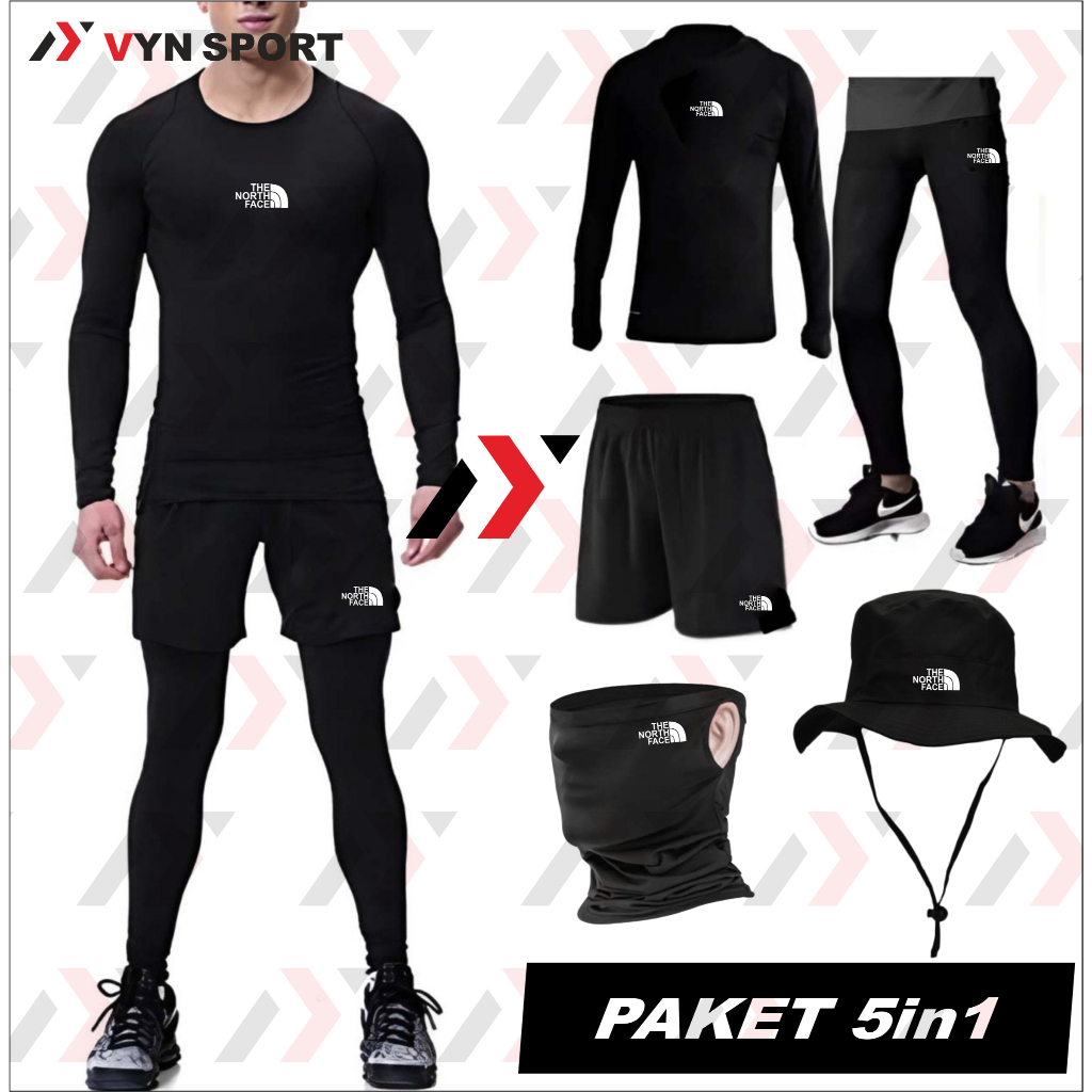 PAKET 5 IN 1 Manset Panjang Baselayer ung Buff Masker Wajah Legging Panjang Longpant Hikking Celana Pendek Topi Rimba un