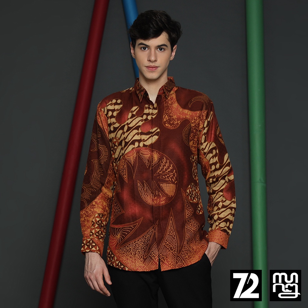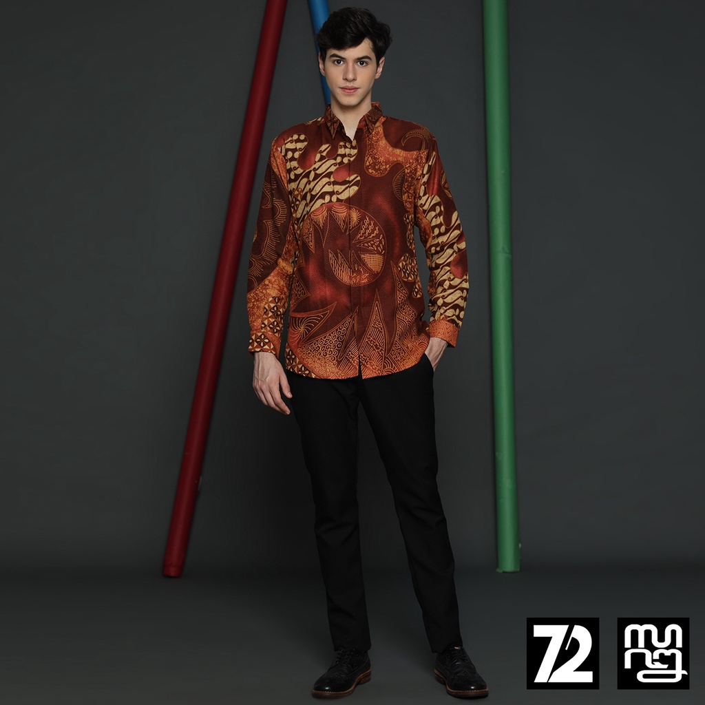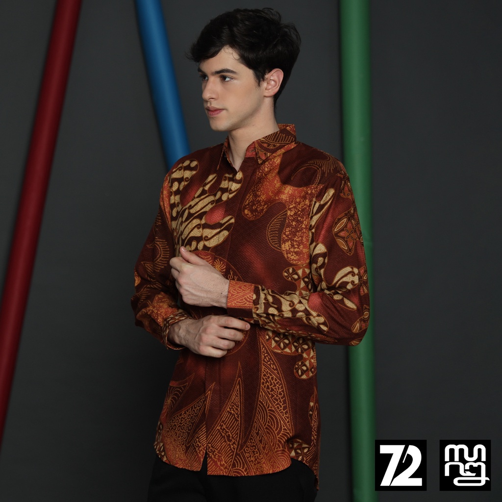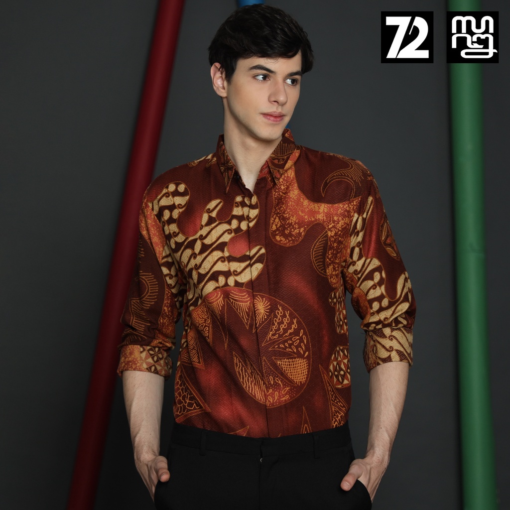 KEMEJA BATIK PRIA Dobby Slimfit Lengan Panjang Parang Premium Alardo Warna Merah Maroon 723580 Cap 72 - Baju Kemeja Atas