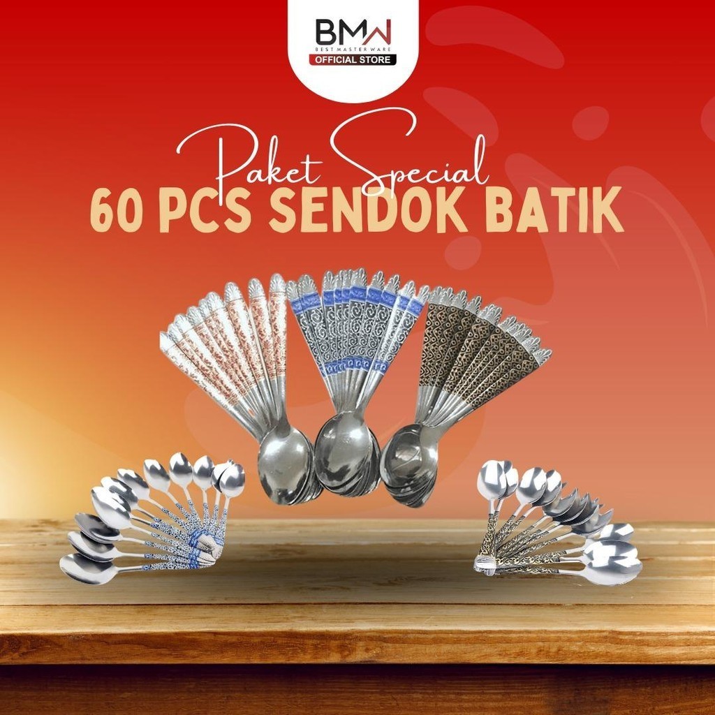 60 PCS / 5 Lusin Sendok Makan Motif Batik Stainless Steel Harga Grosir Alat Makan