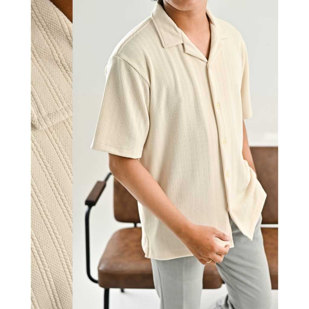 KEMEJA BOWLING SHIRT KNIT PRIA SANTAI LENGAN PENDEK MOTIF TRIBAL SALUR VINTAGE AMAZE VANWINKLE