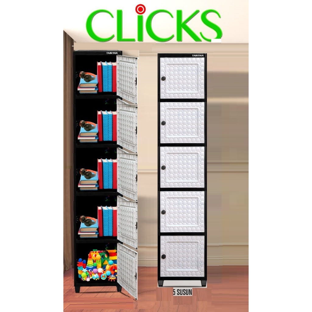LEMARI PLASTIK SERBAGUNA 1 PINTU TABITHA CLICKS TOWER 1 PUTIH CREAM WARNA 2 3 4 5 SUSUN LACI ROTAN