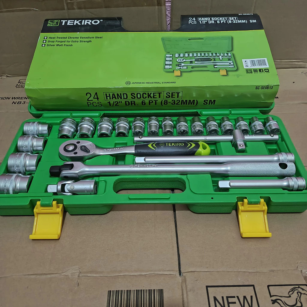 KUNCI SOK SET 24 PCS PVC TEKIRO HAND MATA SOK SHOCK SOCKET 24PCS BOX PLASTIK 6PT 1/2INCI