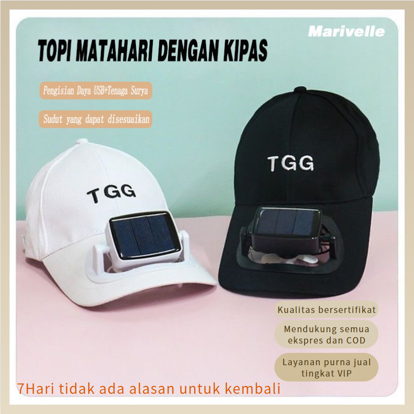 Marivelle Topi dengan Kipas Angin, Tenaga Surya & USB Charger, Pelindung Matahari Multifungsi dengan Kipas Portabel Bert