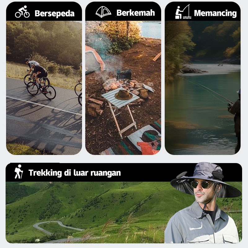 【】Topi Mancing Multifungsi Fishing Hat Anti UV Outdoor import Solar Fan Solar Powered Windproof