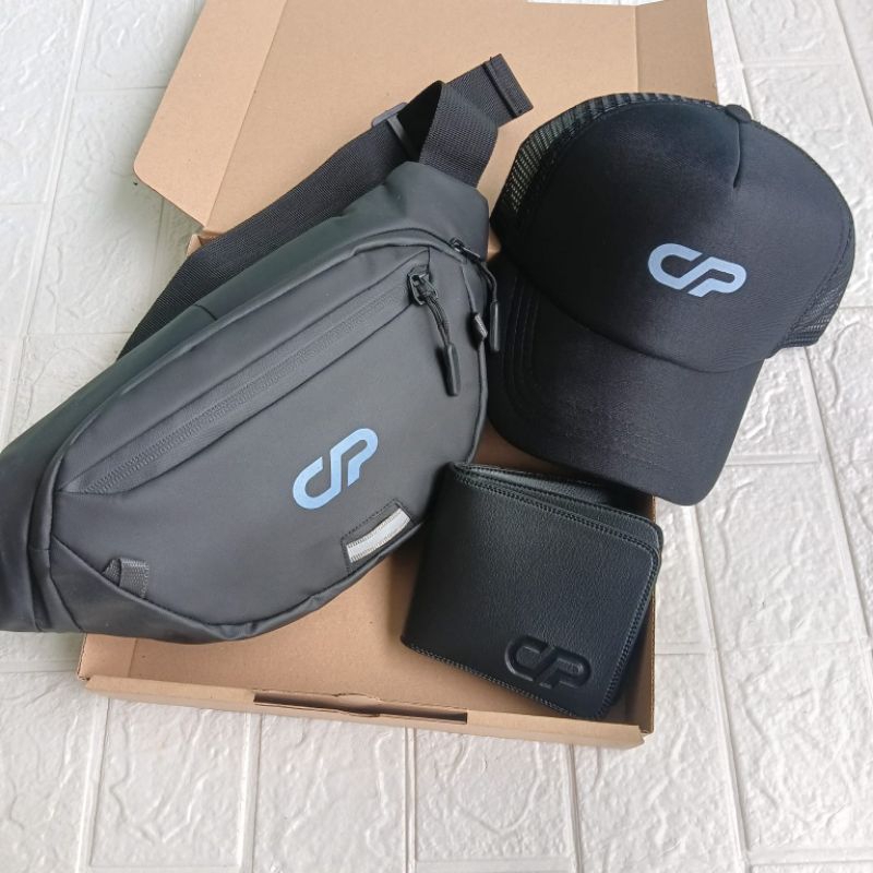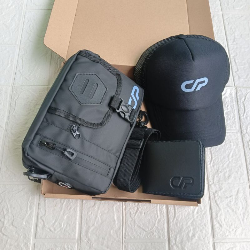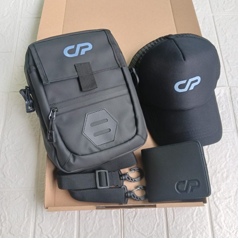 PAKET HAMPERS Kado Give Box CLASSIC PROJECT Tas selempang handbag anti air + Topi Trucker + Dompet Best Seller Bisa untu