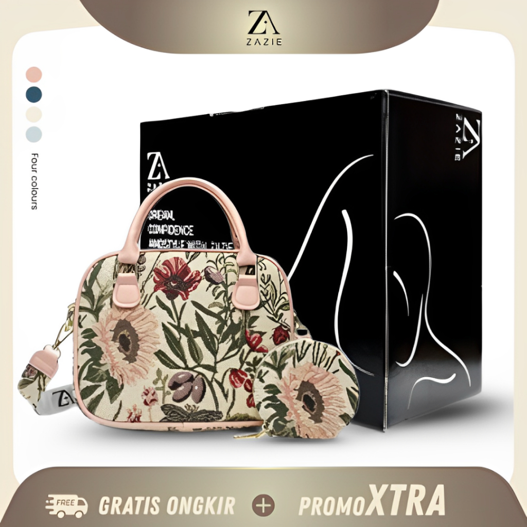 ZAZIE Tas Selempang Wanita Sling Bag Tas Wanita Handbag Motif Bunga FREE Dompet JL-2011