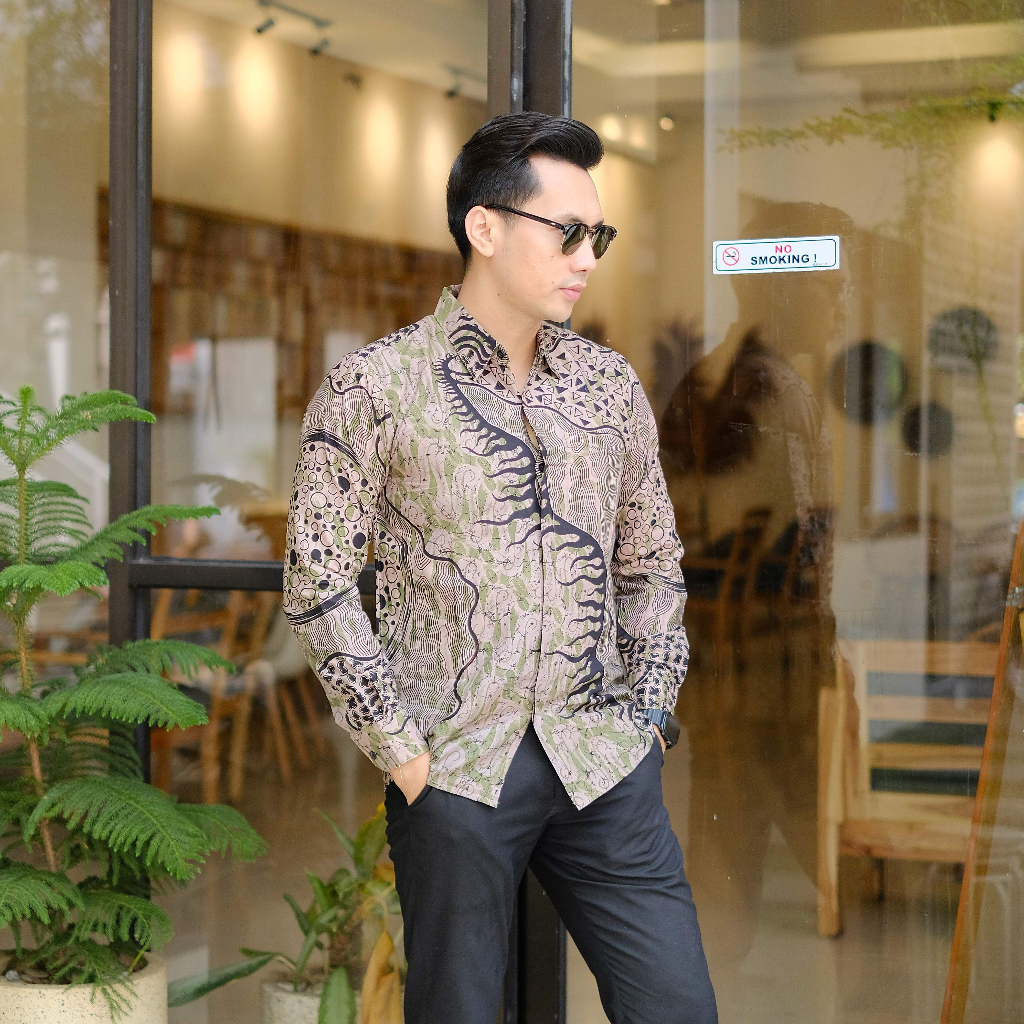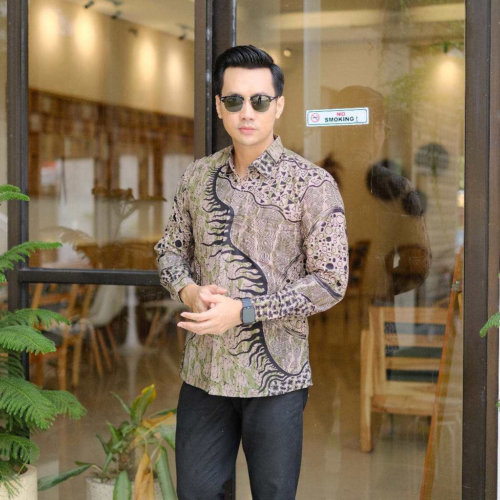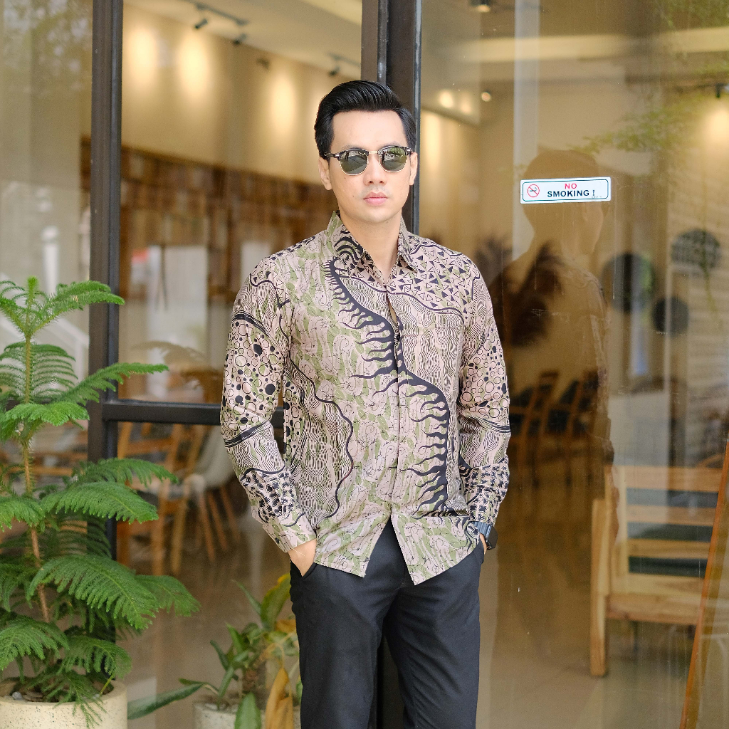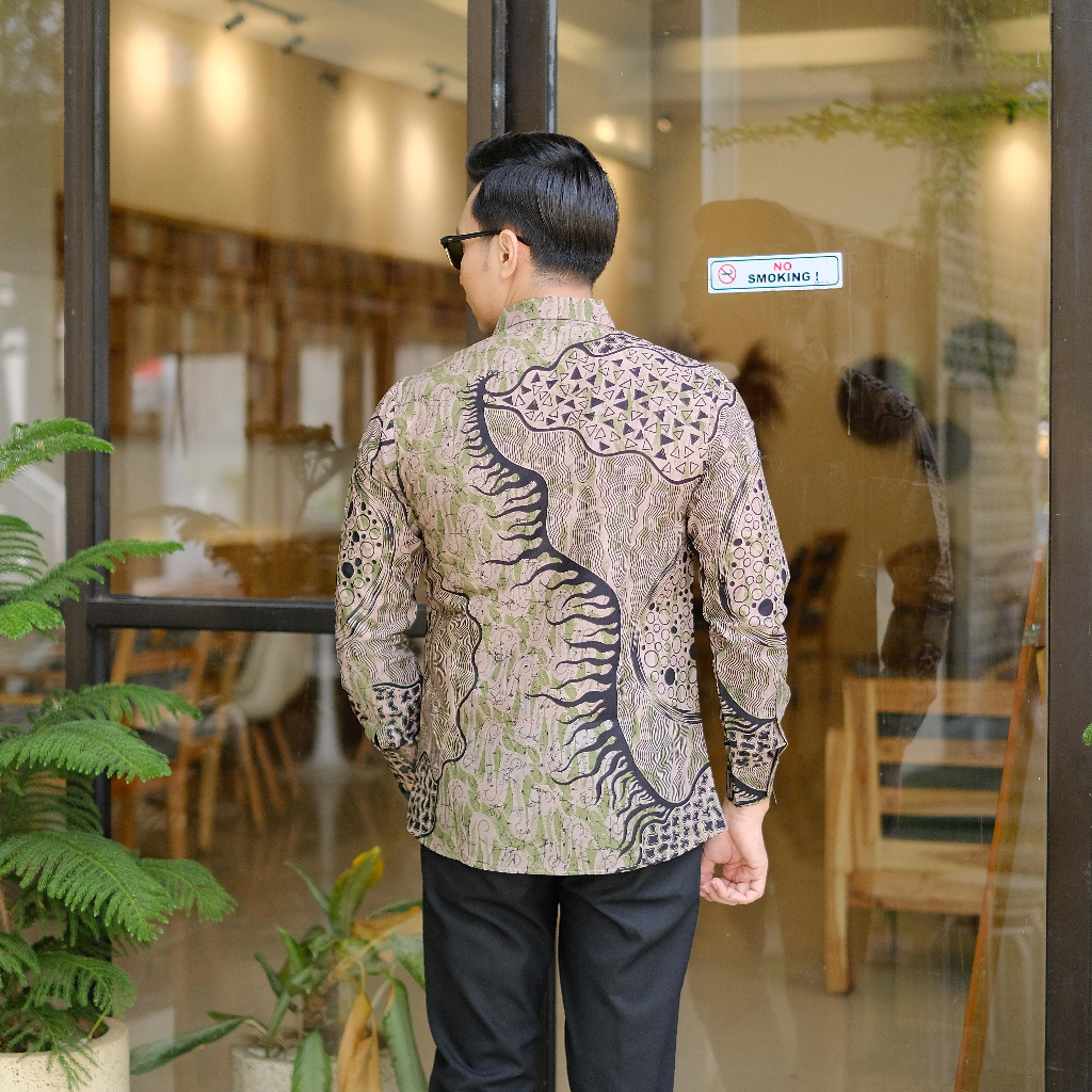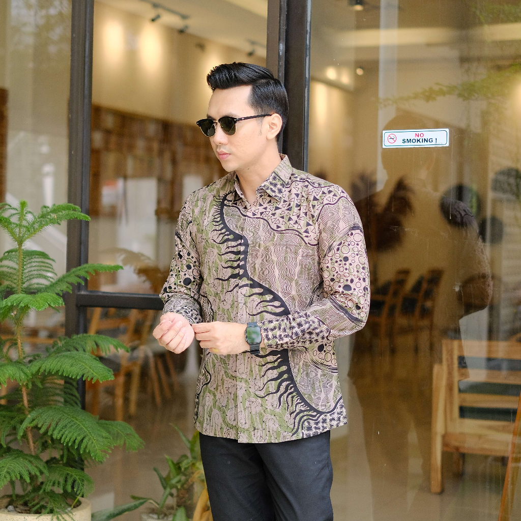ATASAN KEMEJA BAJU BATIK PRIA LAPIS FURING...PARANG ABSTRAK HIJAU