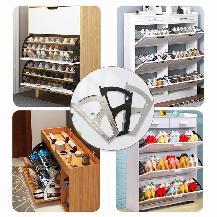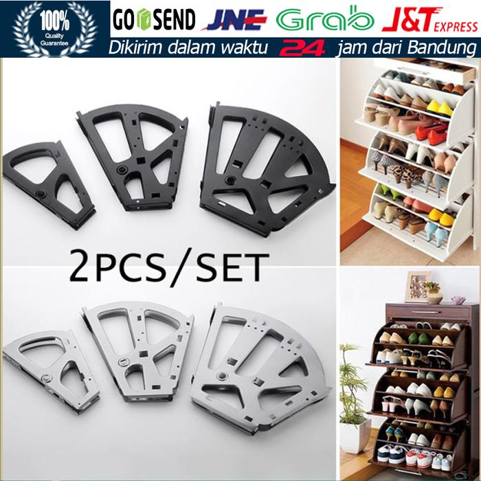 TERLARIS 2PCS BRAKET RAK SEPATU 321 SUSUN BAHAN BAJA ENGSEL RAK SEPATU KIPAS ABUABU 1LAYER